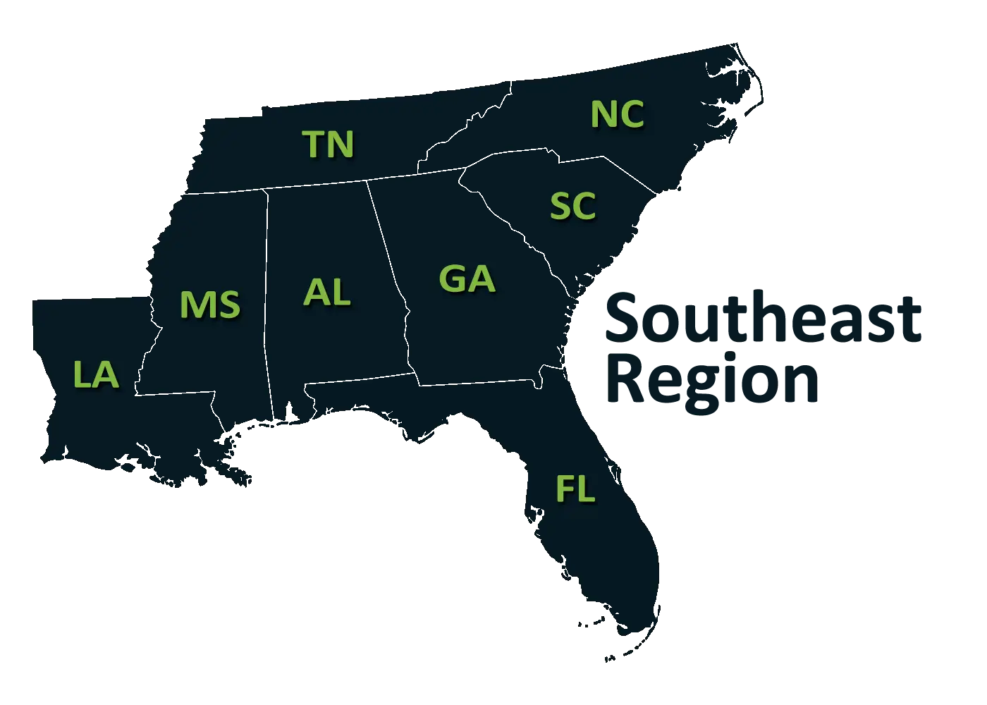 Mobile, AL HQ with crews for fast mobilization. Highlighted markets: